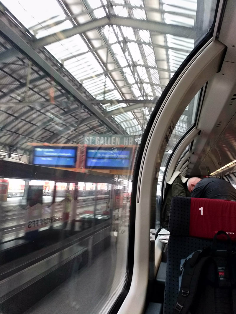 Am Dienstag ging es also los – ich musste zwar nicht ganz zu so einer unchristlichen Zeit aufstehen – der Zug fuhr 10:15 ab. Ich habe mir ja im Vorfeld bereits ein günstiges 1. Klasse Ticket bei der SBB besorgt und als der Zug ankam, hab ich gesehen, dass es sogar ein Panoramawagen hatte. Natürlich habe ich mir dann dort einen Platz gesucht und erobert.