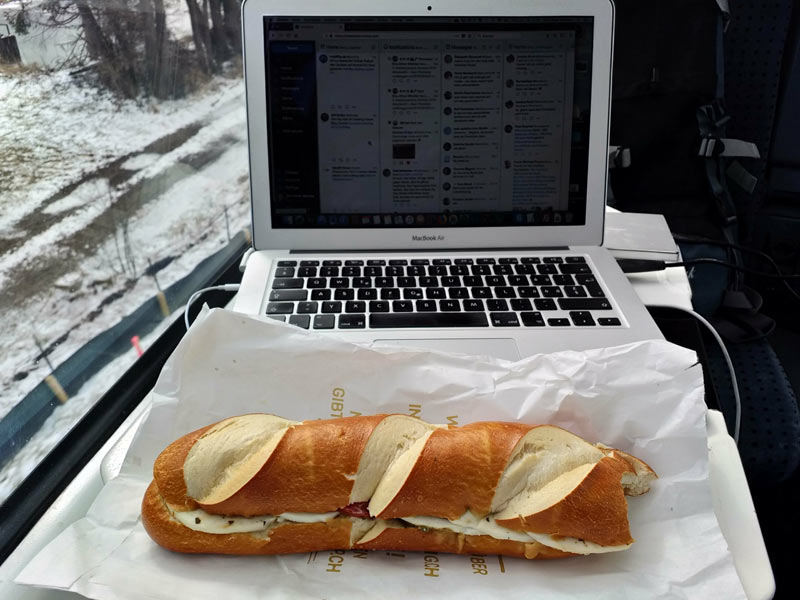 Mit so grossen Fenstern habe ich mich wirklich auf die 3h lange Zugfahrt gefreut. Immerhin konnte ich so bequem am Computer arbeiten, wie auch die Landschaft geniessen.