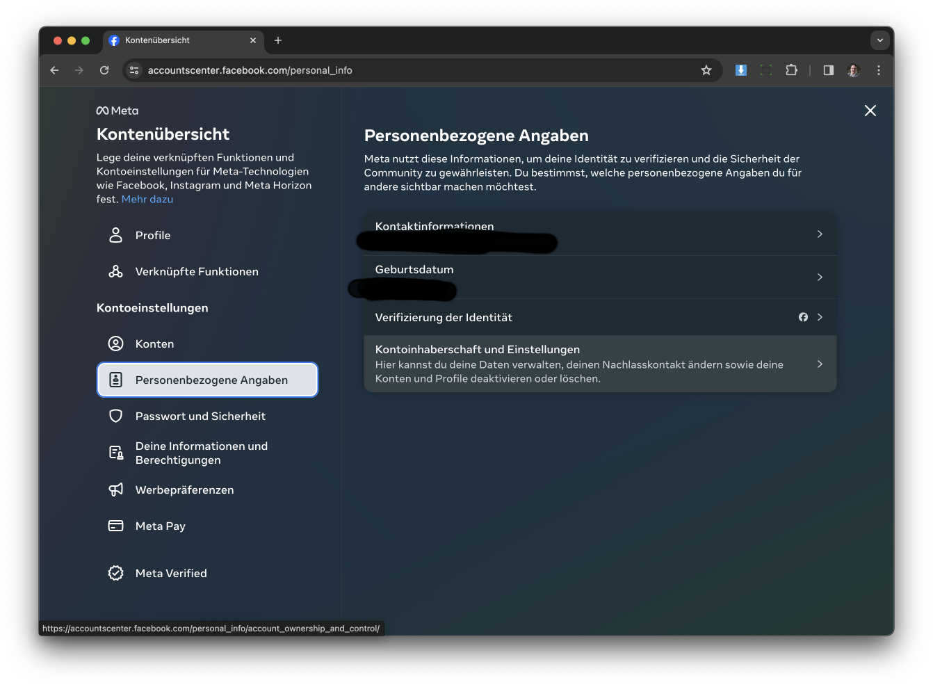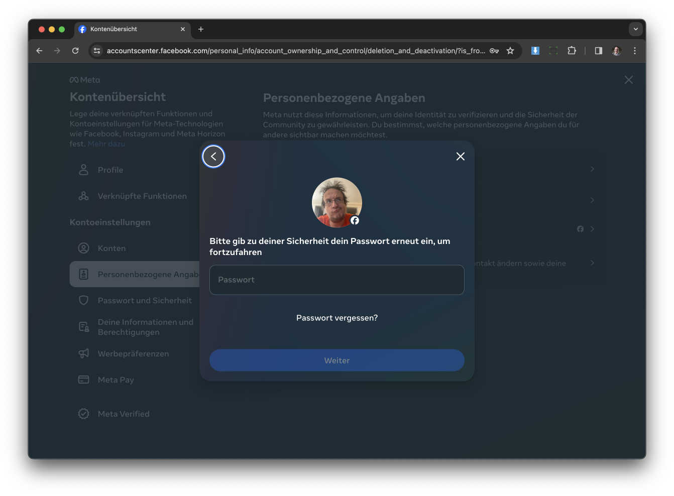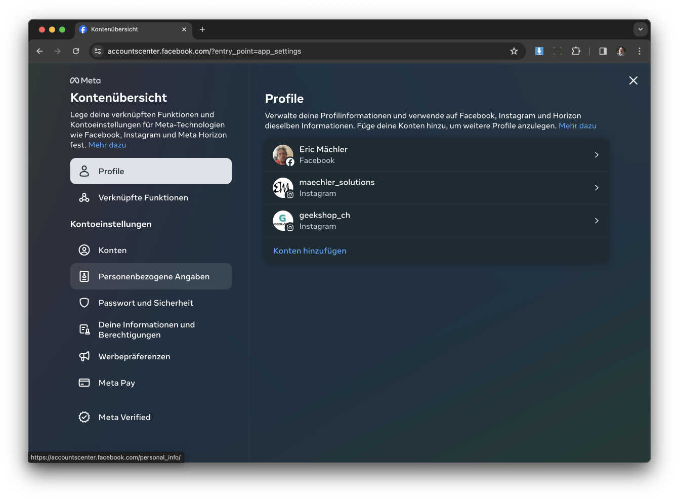 Jetzt müsst ihr auf den Button der neu „Personenbezogene Angaben“ heisst klicken