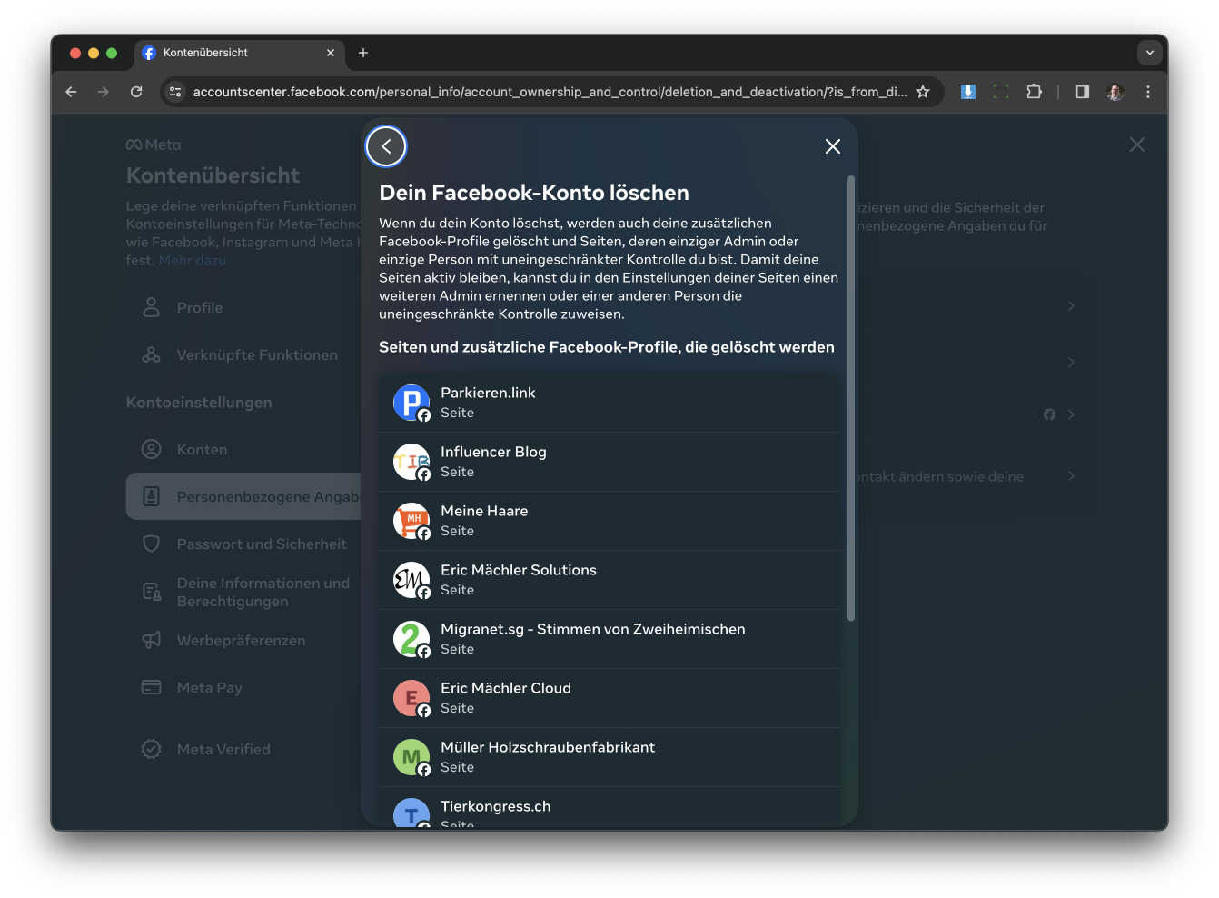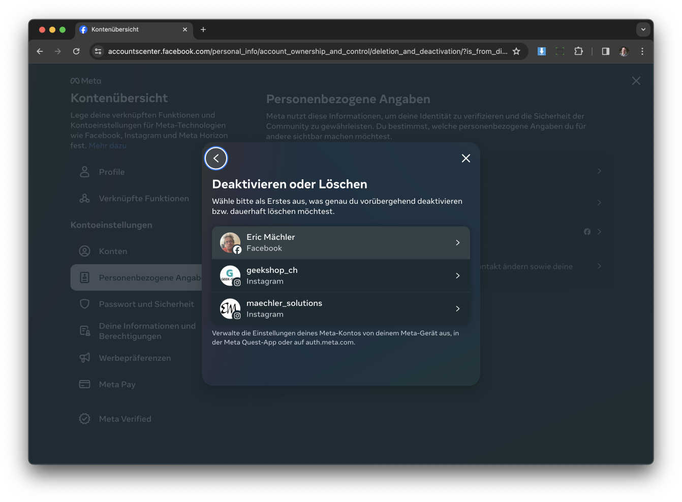 Jetzt müsst ihr das Facebook Konto auswähle das ihr löschen möchtet.
