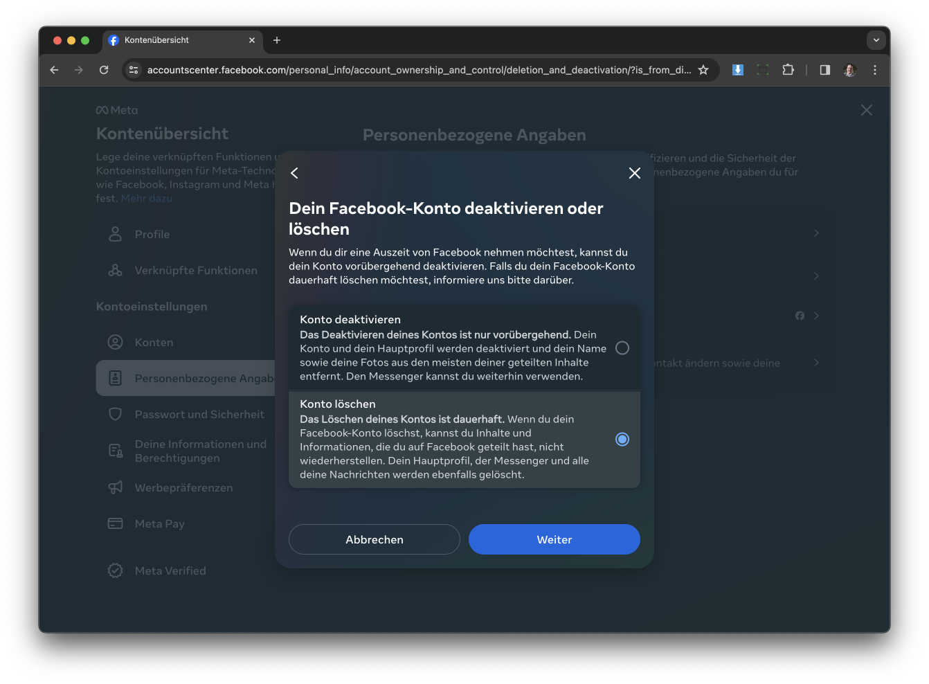 Wie lösche ich mein Facebook Konto?