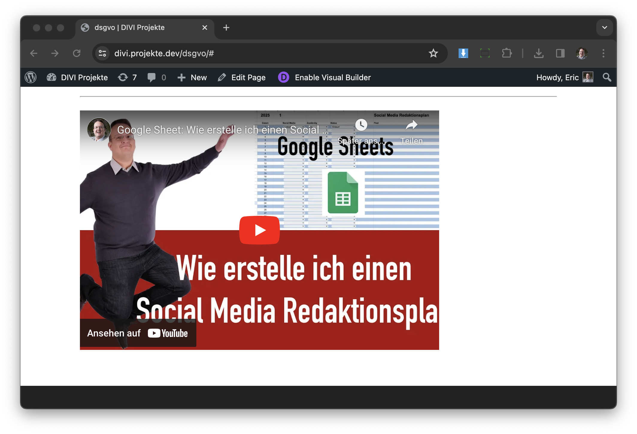 Wenn ich nun auf das Vorschaubild klicke, dann verschwindet das Bild und es erscheint das eingebaute Youtube Video