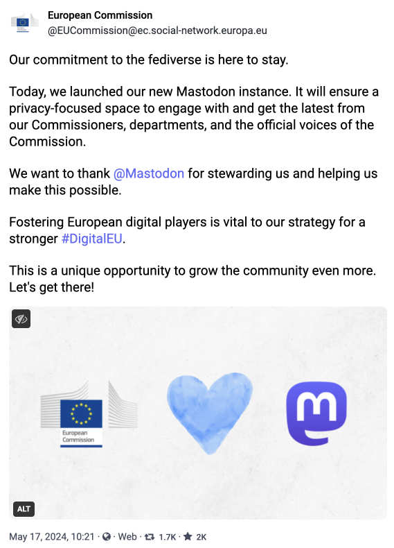 Wie ihr wisst hat die EU vor einiger Zeit ein Versuch durchgeführt und viele Kommissionen sind im Fediverse aktiv – leider ist dieses Experiment bald vorbei und kurzzeitig sah es so aus – als ob sie wieder zu US Konzerne zurück gehen würden (Der Europäische Datenschutzbeauftragte (EDPS) verlässt das Fediverse).