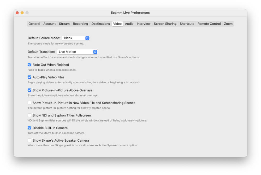 Zuerst müsst ihr das Live Motion in den Preferences / Einstellungen aktivieren. Geht in die Preferences und dann unter Video, und schon findet ihr den Punkt „Default Transition“, und das müsst ihr auf ≪Live Motion≫ umstellen.