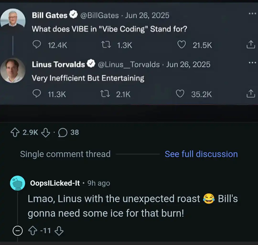 Aber was bedeutet ≪Vibe Coding≫ genau? Diese Frage stellte der Erfinder von Windows und er wurde vernichtend vom Erfinder von Linux beantwortet