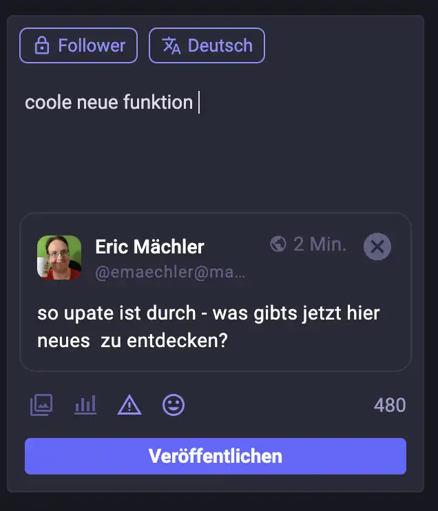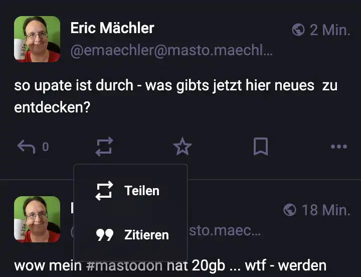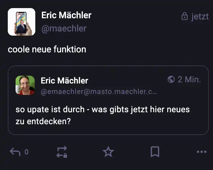 Also ich bin wirklich gespannt wie diese Diskussions-Funktion sich schlägt und ob es nützlich ist oder nur dafür sorgt, dass der Traffic und Datenmüll im Server steigt. Diese Zitat Funktion hat mich jetzt nicht wirklich aus den Socken. Jeder der jetzt aufheult und was von Verrat labert der ist eh verloren. Mastodon war schon immer wie Twitter, X, Facebook, Linkedin ein Ort wo es Gutes gibt wie auch viel Schlechtes. Ich sag immer überall wo es Menschen hat da menschelt es – egal ob gut oder schlecht.