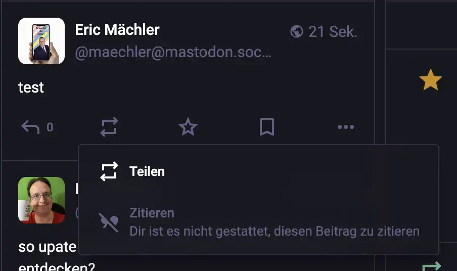 Als User von Mastodon hat man die Kontrolle über diese Zitatfunktion.