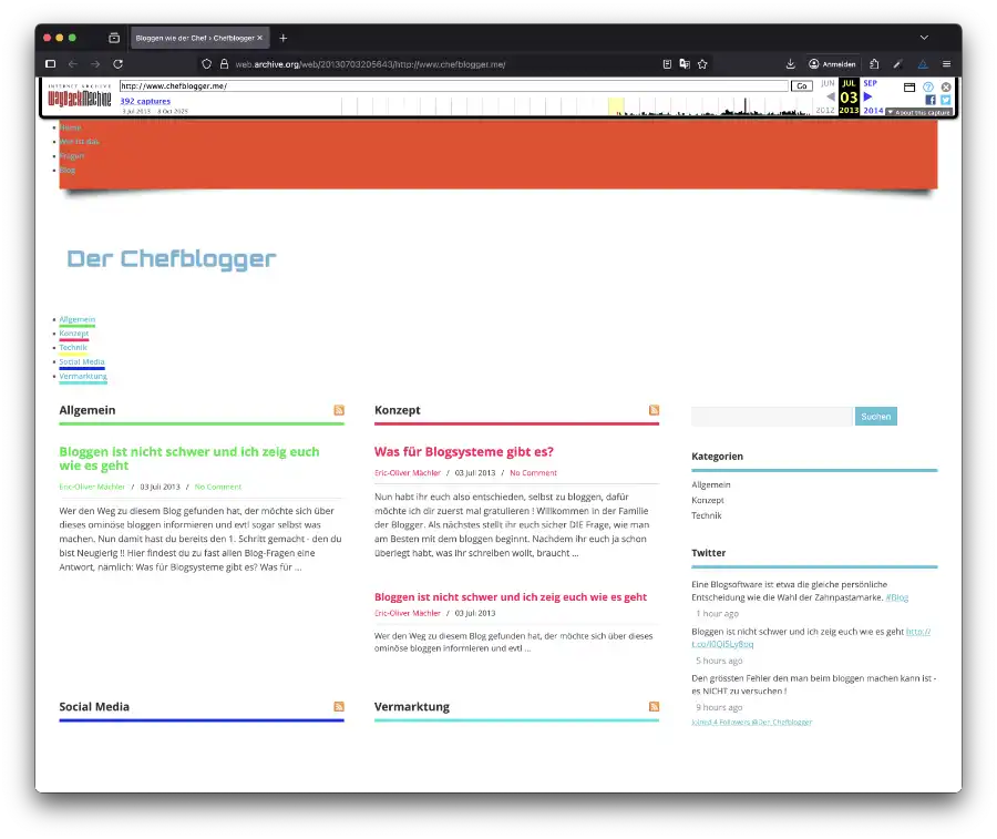 So sah übrigens dieser Blog aus im Jahr 2013 also vor 12 Jahren
