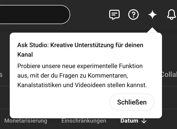 Jetzt, ein paar Monate später, ist es bei mir auch aufgetaucht, und zwar heisst diese neue Funktion YouTube Ask Studio.