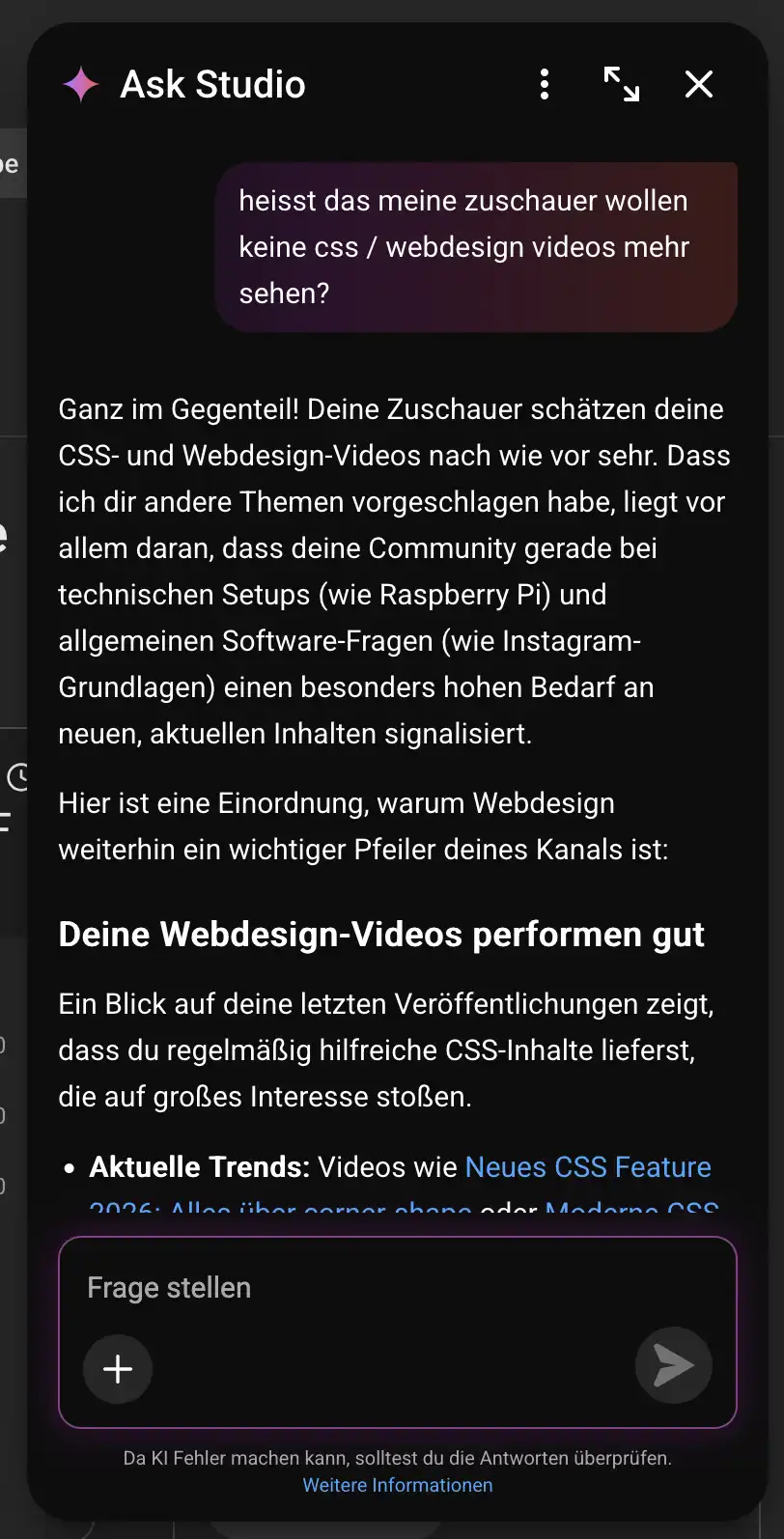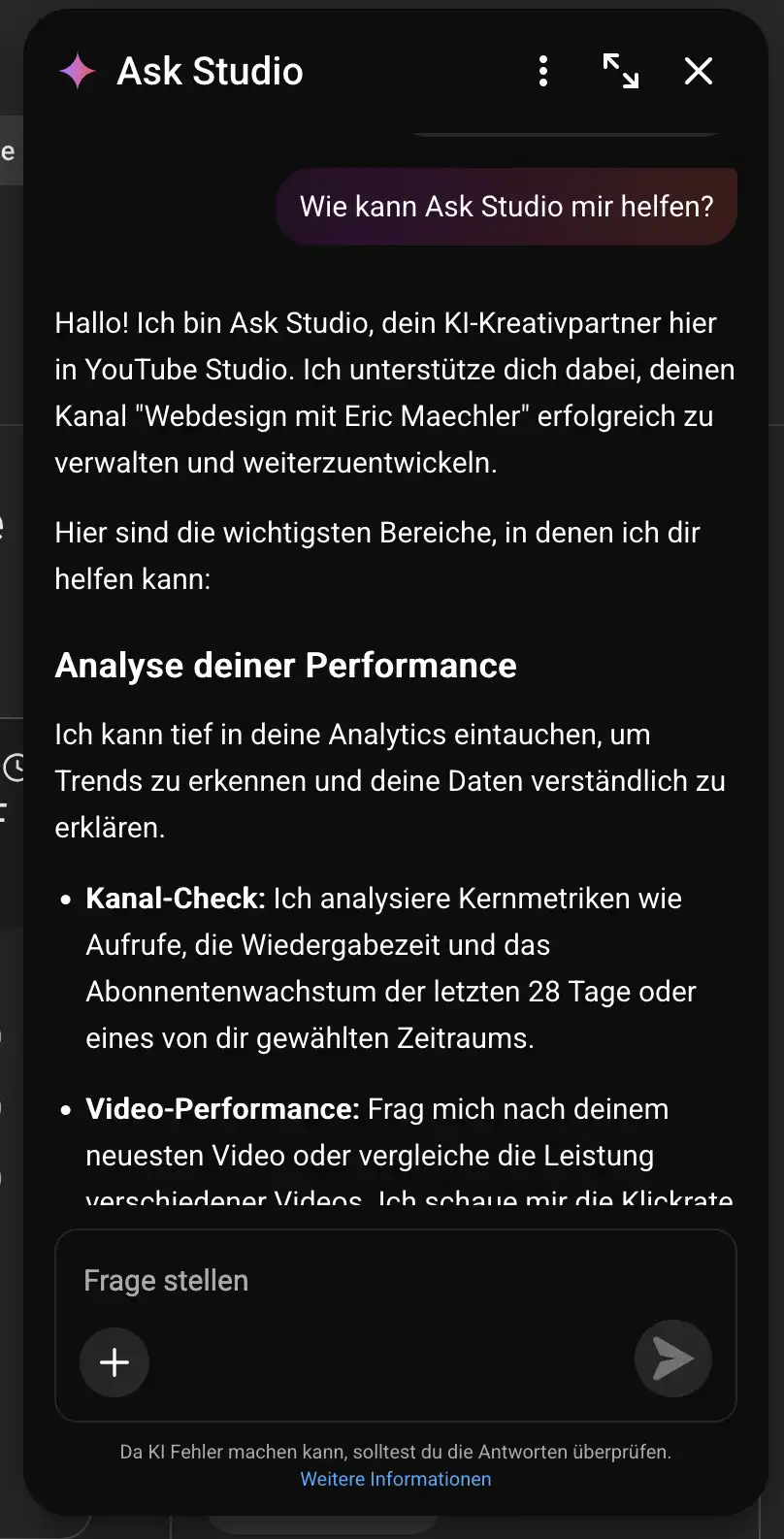 Youtube Ask Studio – und mein erster Eindruck der Youtube KI