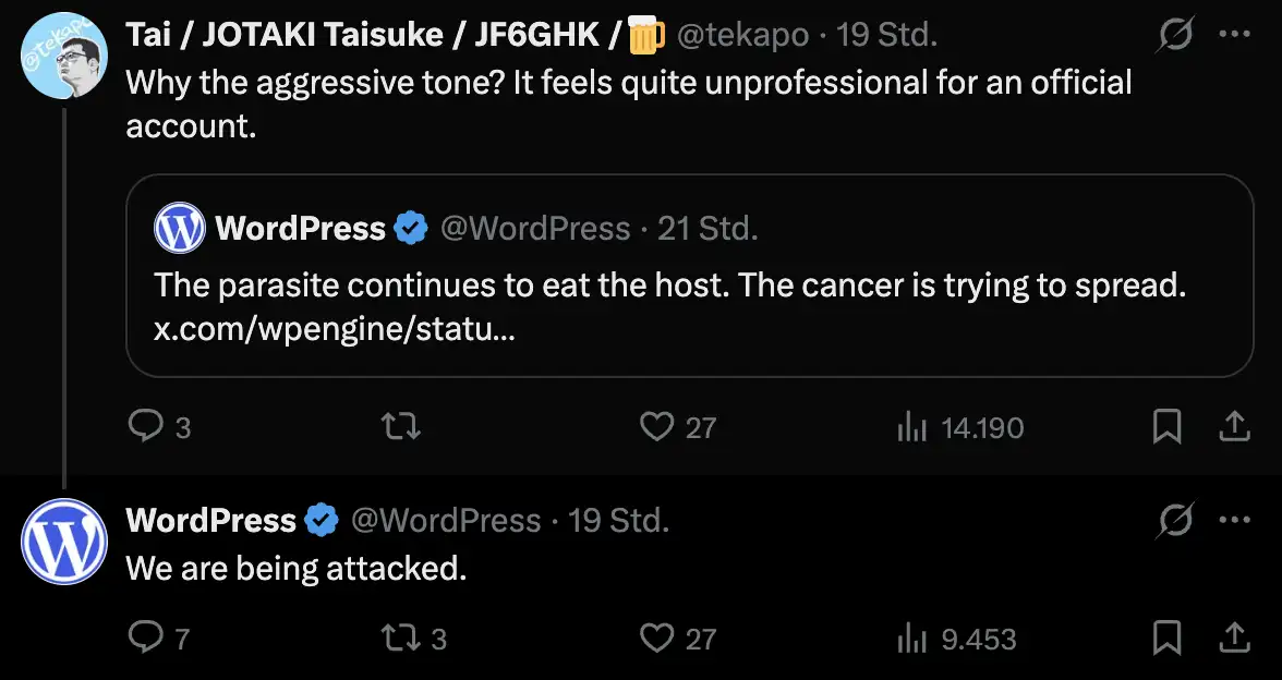 Also, dieser Austausch wird sicher auch gleich in die Klage von WPEngine gegen WordPress aufgenommen.